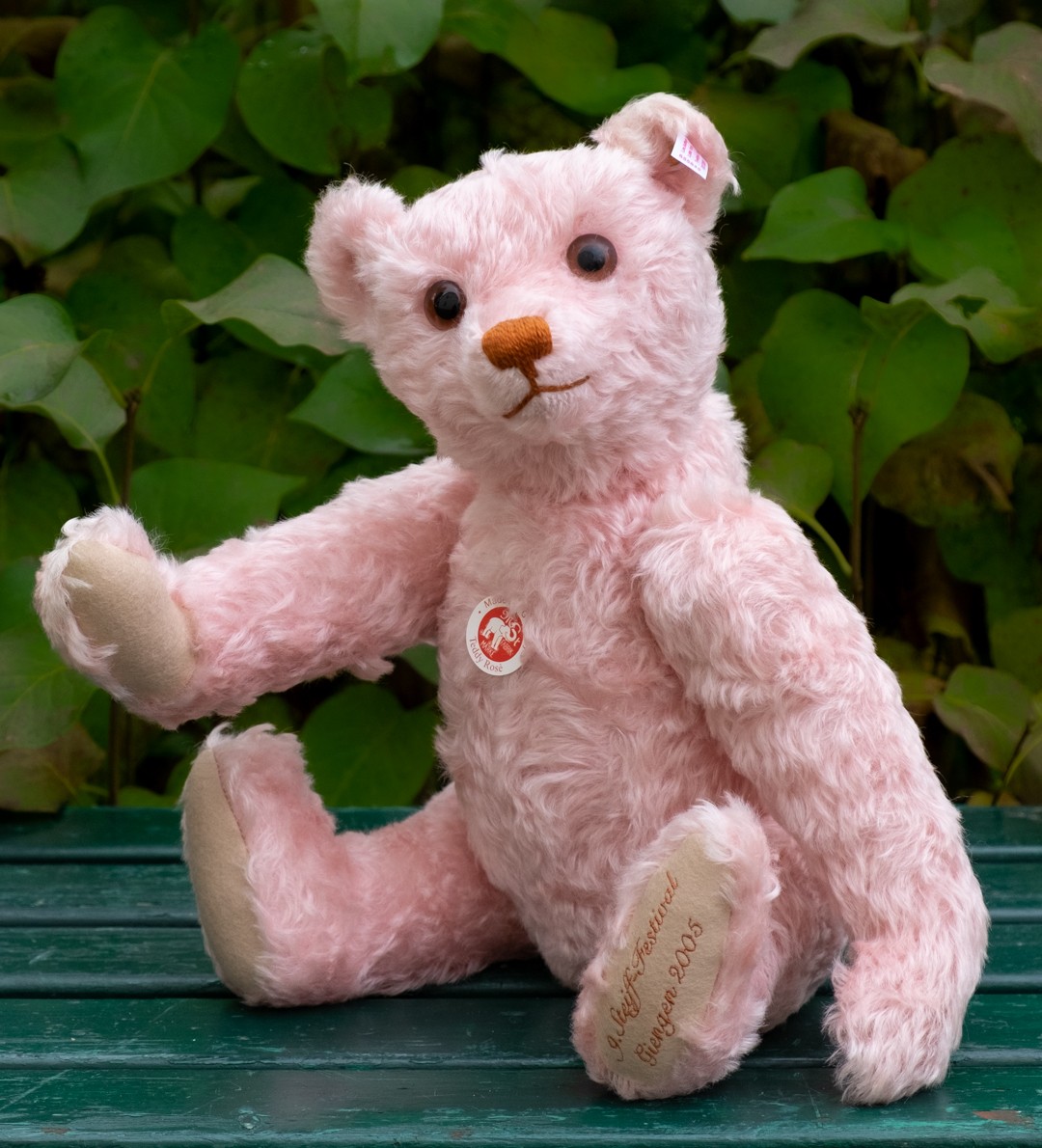 Teddy Rosé from the 9th Steiff Festival in Giengen 2005. Limited to 3,000 pieces. Handmade in Germany by Steiff. This is number 01301. EAN 655845.